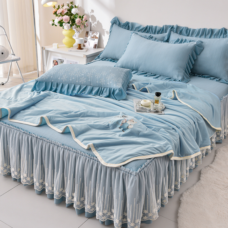 2025新款冰丝豆豆凉席夏凉被四件套床裙款可机洗公主风夏天空调被