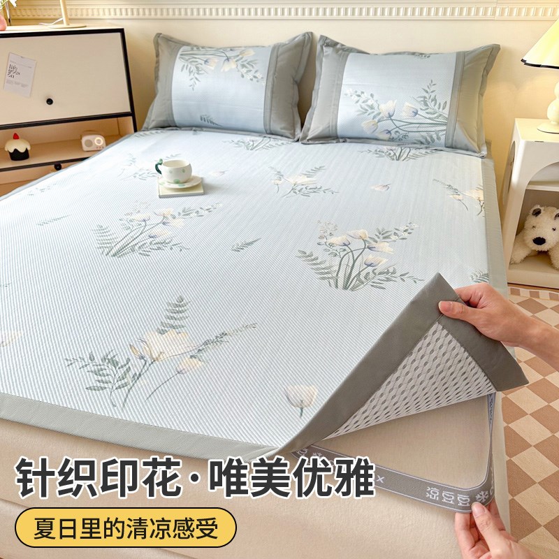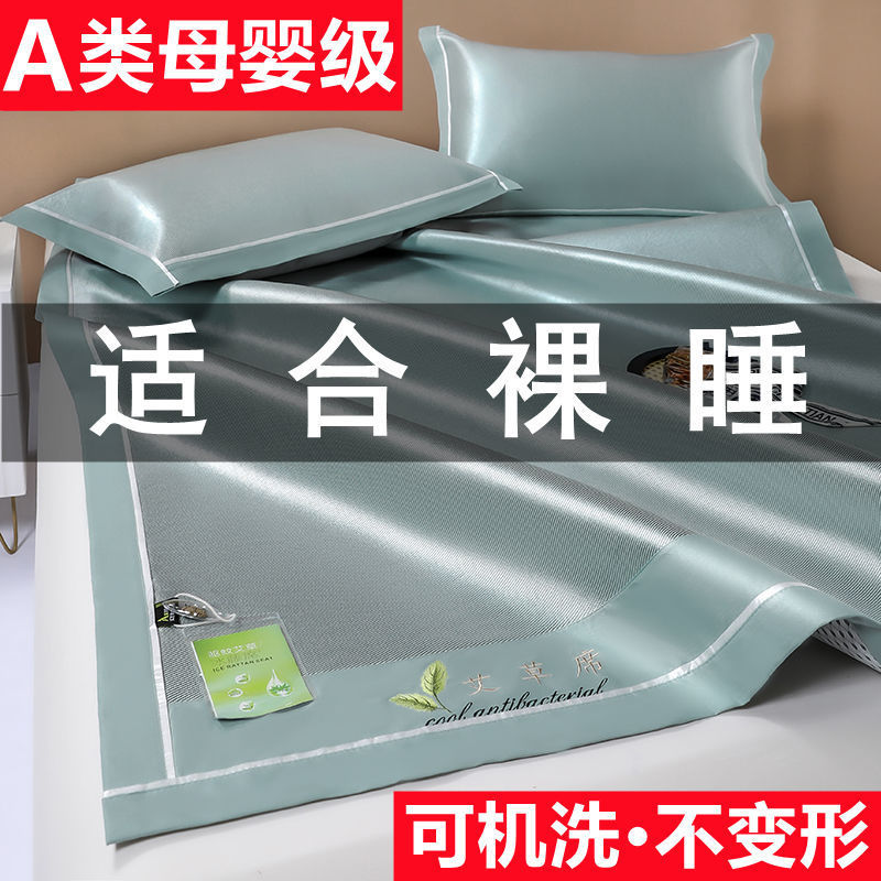 A类母婴级冰丝凉席三件套夏季新款可机洗床笠冰藤席床单空调席子