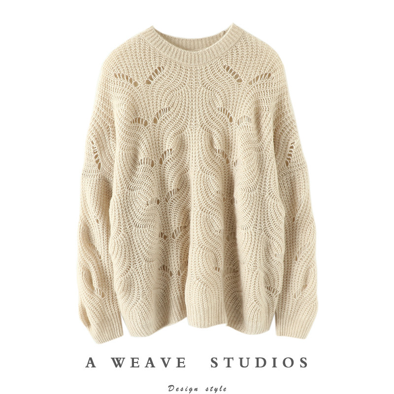 狂赞!太抬气质了~春夏镂空纯羊绒衫女圆领宽松针织空调防晒罩衫