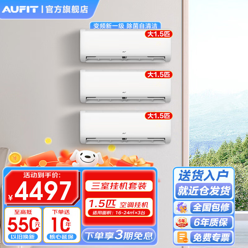 AUFIT空调奥克斯出品套装新一级能效 三室一厅两室变频冷暖 智能调节节能省电 客厅卧室一套购齐组合套 【三室基础款】大1.5匹挂机*3