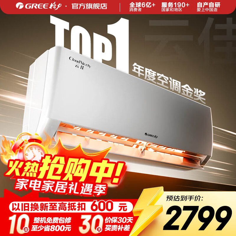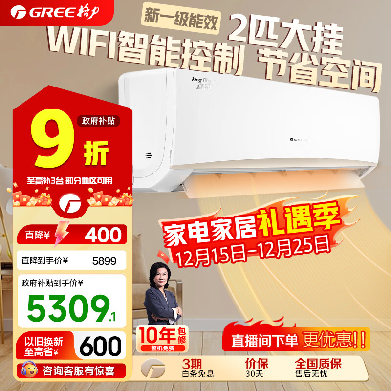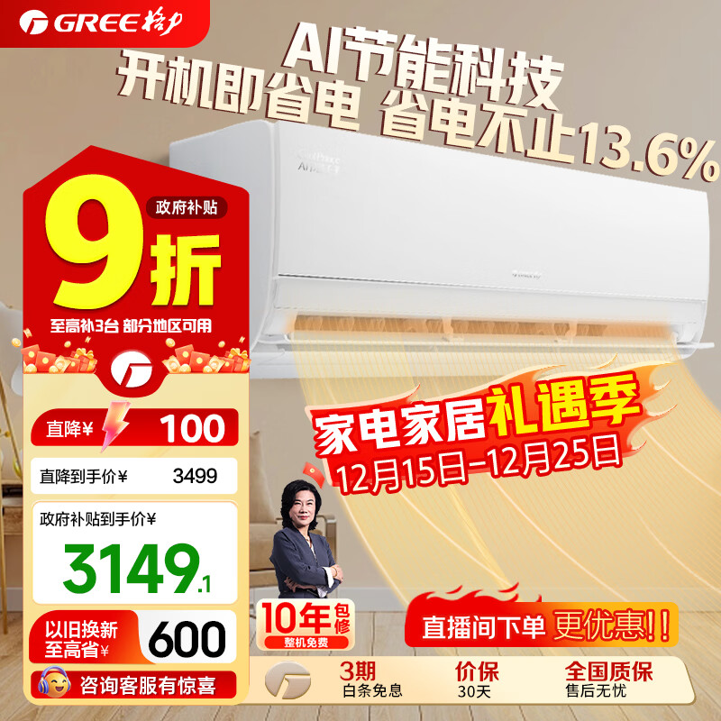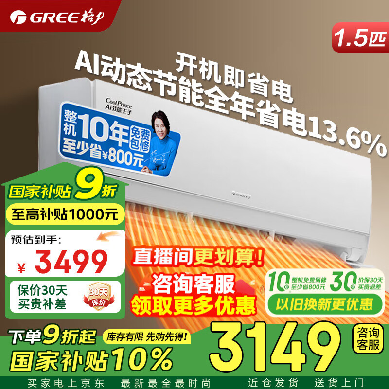 格力(GREE)空调新科技Ai节能王子新1级能效 变频冷暖自清洁 壁挂式卧空调挂机省电不止13.6% 家电补贴20% AI节能王子 1.5匹 一级能效【省电升级款】