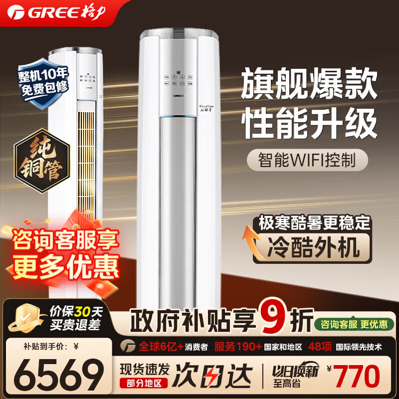 格力(GREE)空调天仪 2匹/3匹 客厅圆柱立式空调柜机新一级能效自清洁独立除湿变频冷暖 以旧换新 政府补贴 3匹 一级能效丨【适用30-45㎡】性价比款