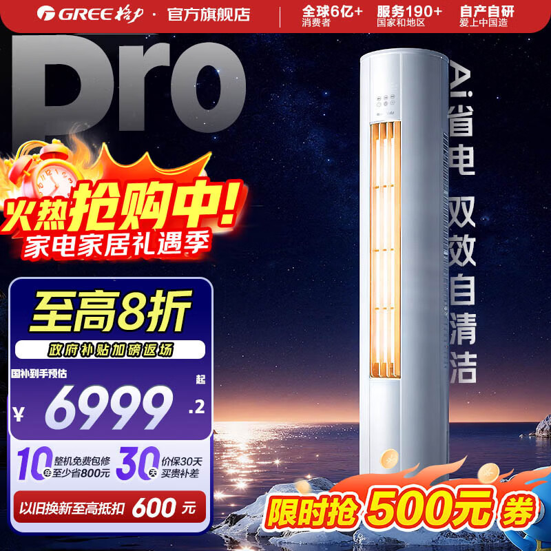 格力(GREE)空调 云锦Pro 3匹 变频冷暖 自清洁 智能WiFi 大风量 家用客厅 立式柜机 家电补贴以旧换新 云锦Pro一级能效 3匹 2025年新品