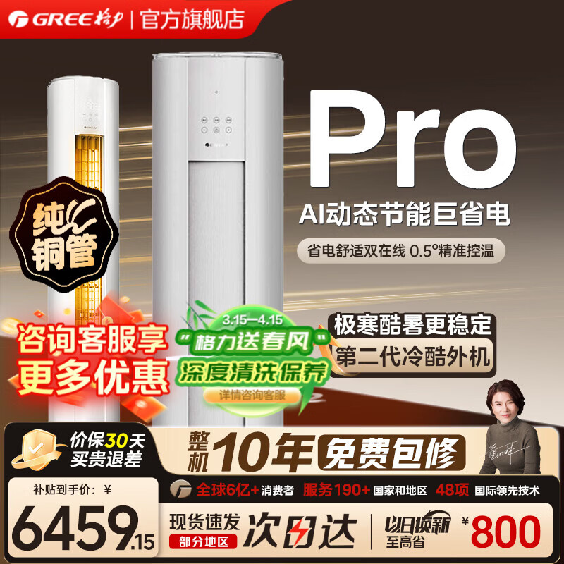 格力(GREE)空调柜机 云佳pro 3匹/2匹 新一级能效 圆柱式方柜空调 变频冷暖 家用客厅 以旧换新 家电国家补贴 3匹 一级能效 云佳Pro【云锦三代升级款】 皓雪白