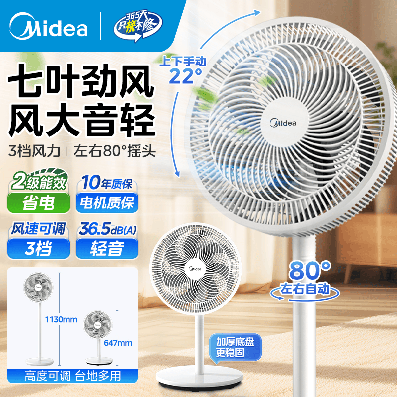 美的(Midea)电风扇家用落地扇空调伴侣台式桌面小风扇七叶台地两用轻音节能大风量客厅宿舍广角送风易拆洗摇头 【白色按键】远距强风30AC