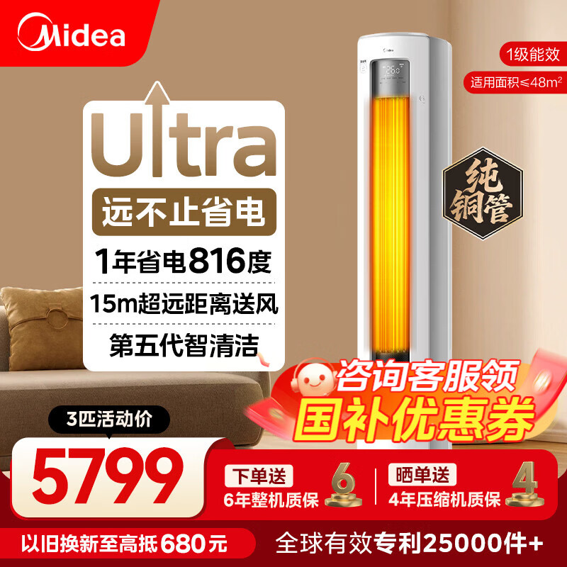 美的(Midea)【官方正品】酷省电Ultra 大3匹 新一级能效 柜机空调变频冷暖家用客厅立式独立除湿新款以旧换新 酷省电Ultra 一级能效25年新款 大3匹