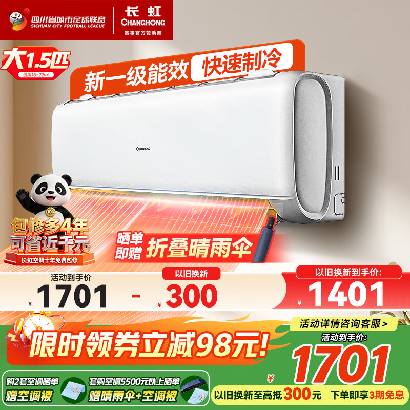 长虹空调 大1.5匹变频冷暖空调新一级能效省电熊猫懒卧室挂机国家补贴十年包修KFR-35GW/ZDCSW1+R1(SE) 熊猫懒 大1.5匹