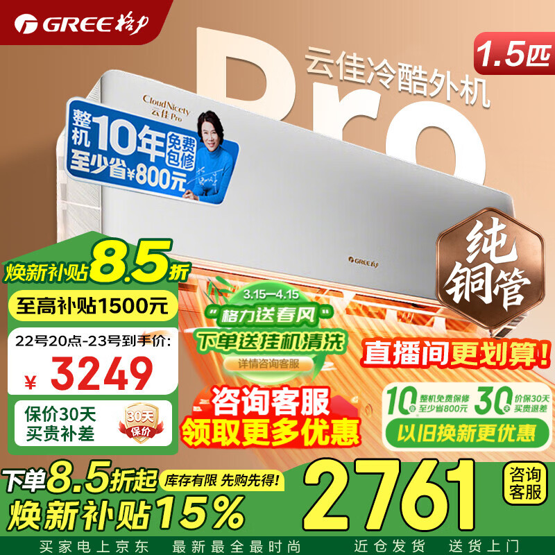格力【国家补贴】空调云佳Pro 新品上市一级能效变频冷暖自清洁壁挂式卧室空调挂机以旧换新 云佳Pro 冷酷外机 1.5匹 一级能效 新款上市