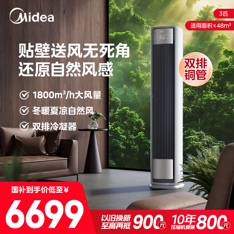 美的(Midea)【官方正品马思纯同款】全面风3匹纯铜管一级能效风尊二代客厅立式空调省电大风量柜机变频冷暖 全面风 3匹 一级能效25年新款