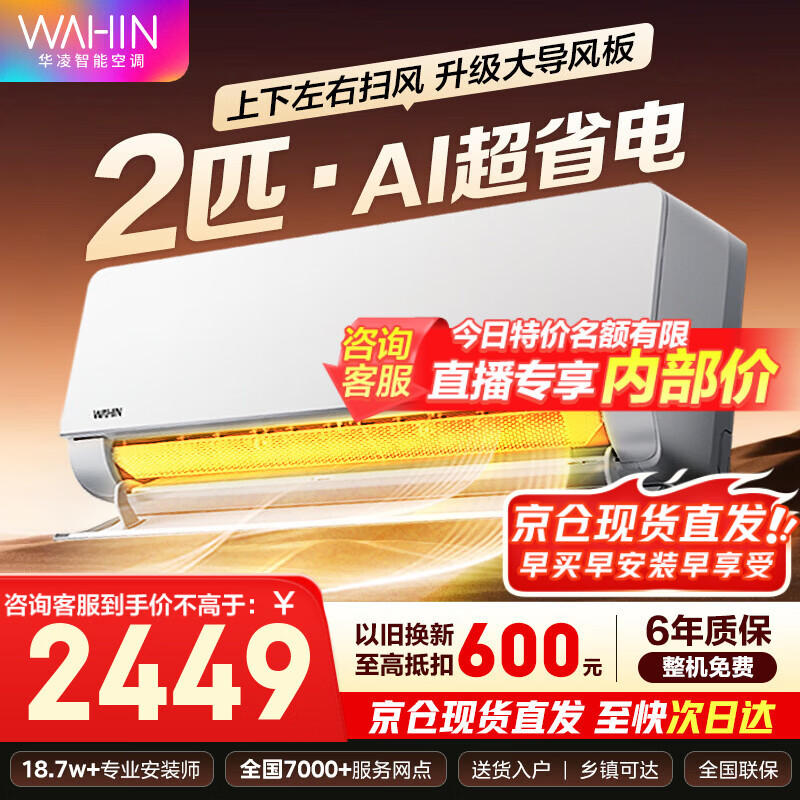 华凌【旗舰款】华凌空调 新能效 变频超一级 冷暖壁挂式 手机智控 空调挂机 家电补贴 8折 2匹 一级能效50HL1-A升级款