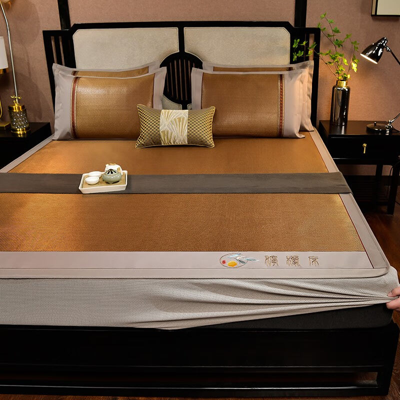 床笠款凉席用可折叠空调席子密藤席三件套单双人冰藤席全包固定柠