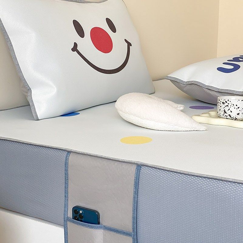 儿童可机洗夏季冰丝席凉席床笠三件套小清新凉感空调席子床上用品