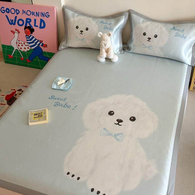 类夏季冰丝凉席三件卡通风可爱立体印花可水洗凉感床笠空调席