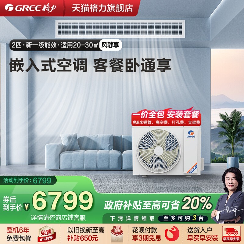 Gree/格力中央空调家用客厅风管机一级2匹一拖一K系列风静享