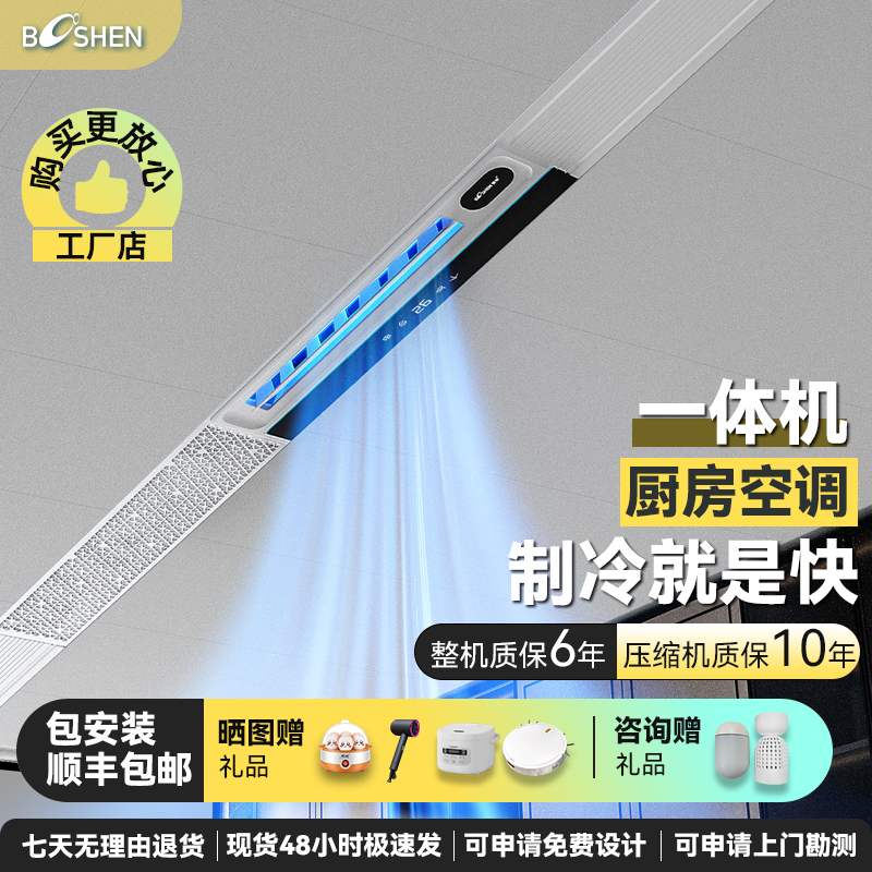 Booshen酷家厨房专用空调家嵌入式吸顶空调线型大冷量单冷防油烟