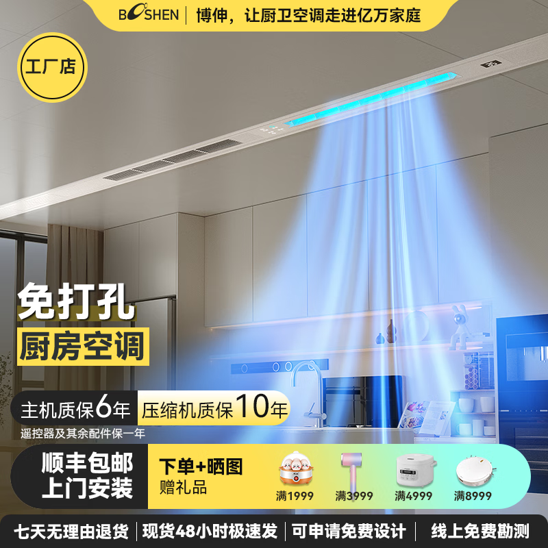博伸COOL风厨房空调制冷机家用嵌入吸顶隐藏一体式无外机厨房空调