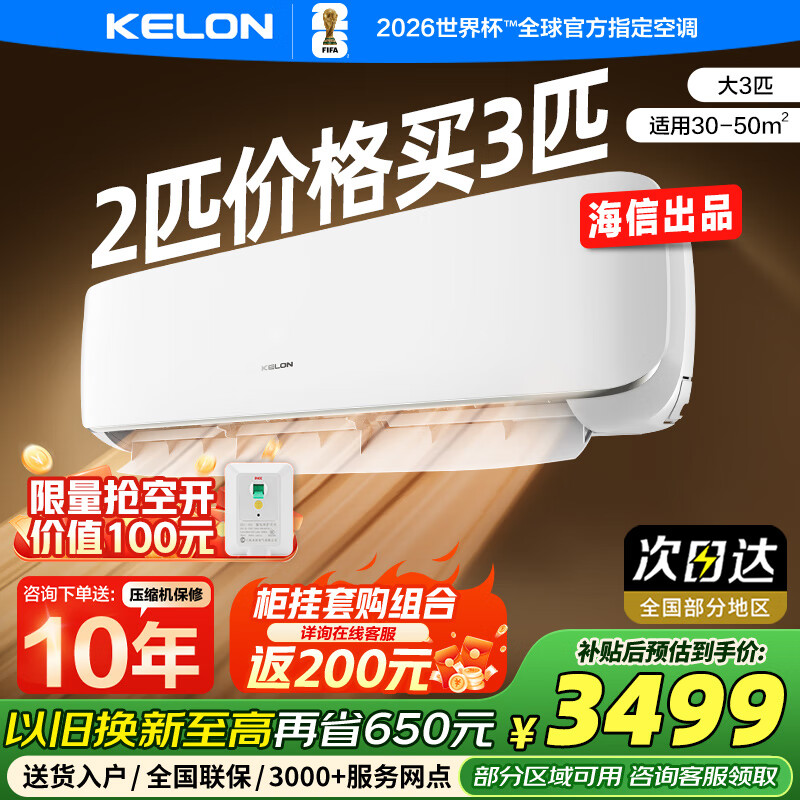 科龙空调大3匹挂机 海信出品 新一级能效变频冷暖以旧换新 国家补贴省电pro 上门安装KFR-72GW/QS1-X1