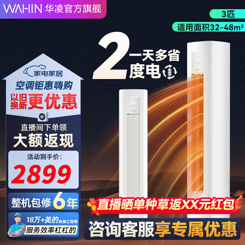 华凌空调 超省电柜机 大三匹 变频冷暖立式客厅圆柱家用智能家电 超省电 二级能效 大3匹 KFR-72LW/N8HA2Ⅲ