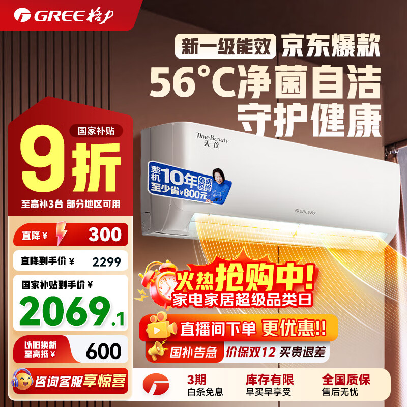 格力(GREE)空调天仪1匹1.5匹新一级能效挂机冷暖变频自清洁挂式国家政府补贴20% 天仪 1.5匹 一级能效