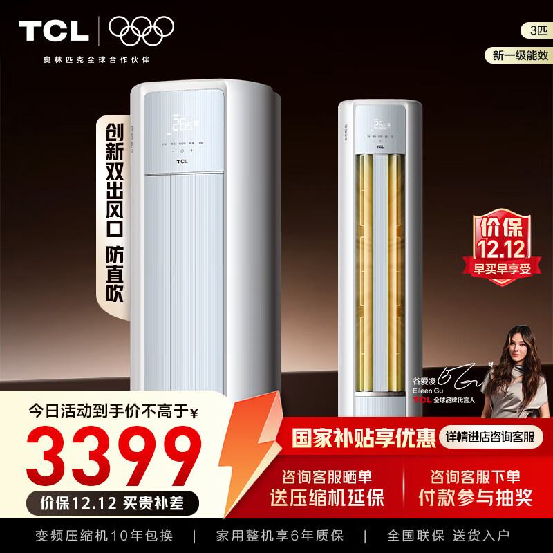 TCL空调柜机 新一级能效 真省电SE柜机 节能省电空调冷暖 客厅立式空调 大风量 以旧换新 3匹 一级能效 KFR-72L/JD21+B1