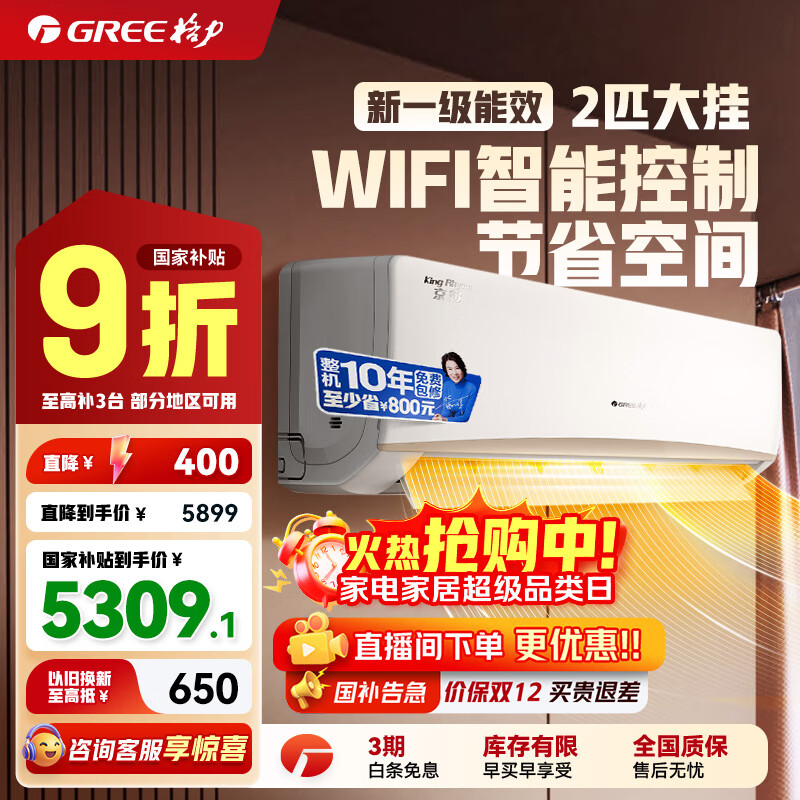格力(GREE)空调京韵 新一级/三级能效变频冷暖 大风量 高温自洁 WIFI小客厅大卧室壁挂式大挂机 京韵 2匹 50GW/NhKe1BAj一级能效
