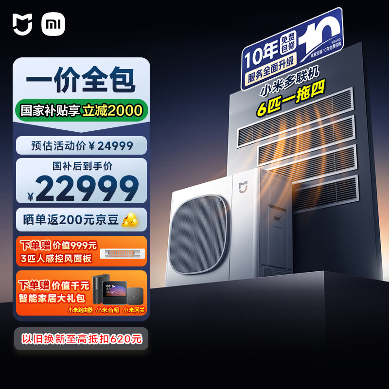 小米(MI)米家中央空调多联机6匹一拖四全直流变频Pro超一级能效 140Wn-OC30/N1C1 国家补贴整机十年质保
