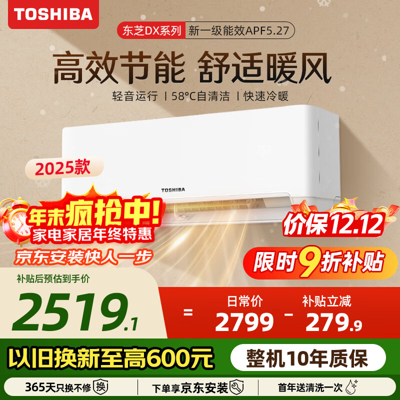东芝(TOSHIBA)空调 大1.5匹 新1级能效 省电 变频冷暖卧室舒适风 壁挂机RAS-13TKVG1G4-C RAS-13TAVG1G4-C