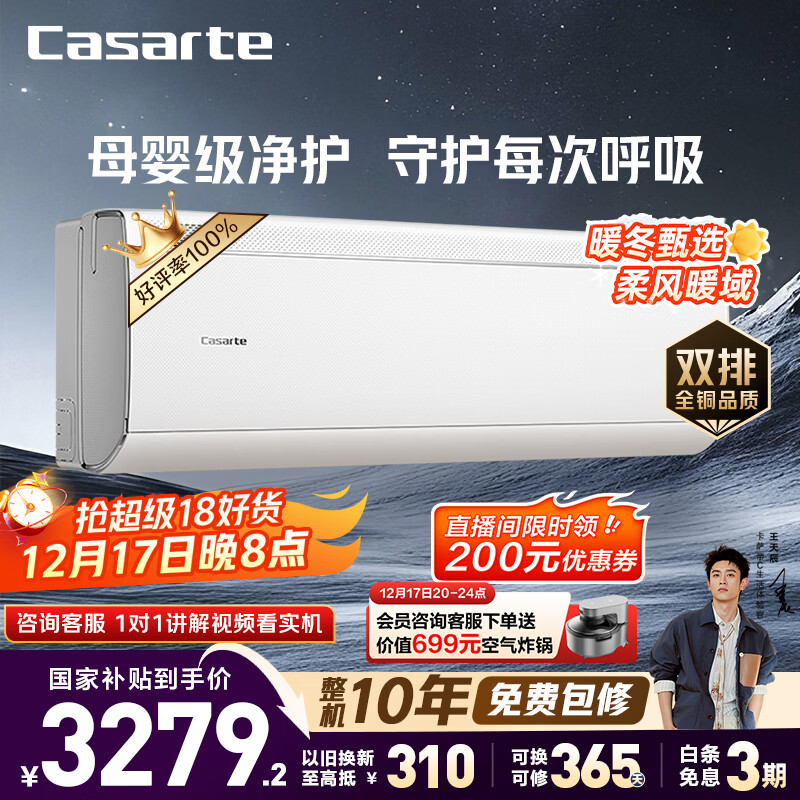 卡萨帝空调 揽光星悦版 1.5匹 新一级能效变频 卧室挂机 舒适风 全铜管路 国家补贴CAS3530FCC(81)U1