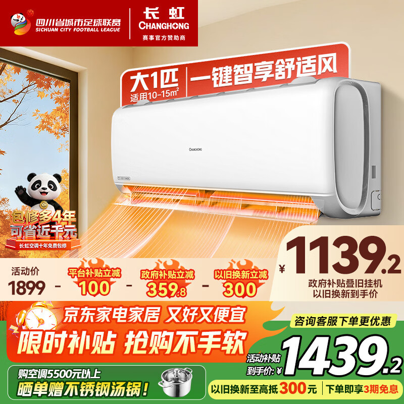 长虹空调大1匹变频一级能效节能省电壁挂式冷暖家用卧室静音空调挂机KFR-26GW/ZDCSW1+R1(SE) 大1匹 一级能效