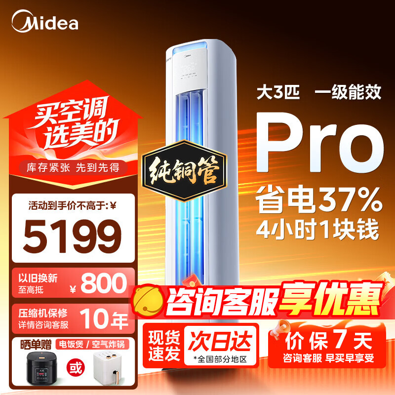 美的(Midea)酷省电pro大3匹ultra新一级能效8折20%空调柜机立式变频冷暖家用客厅空调2匹家电国家补贴以旧换新 酷省电Pro 大3匹 一级能效