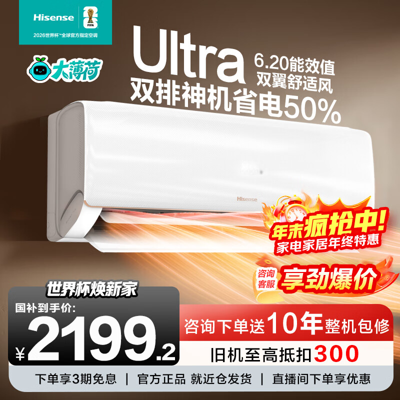 海信(Hisense)大薄荷空调 大1.5匹挂机 询单优惠 智省电Ultra 新一级 双翼定制风 内外机双排倍省电 APF高达6.2 智省电 大1.5匹 【Ultra】大双排满配倍省电