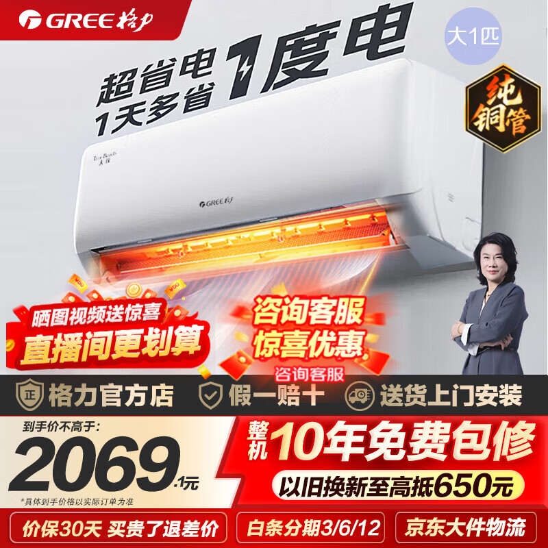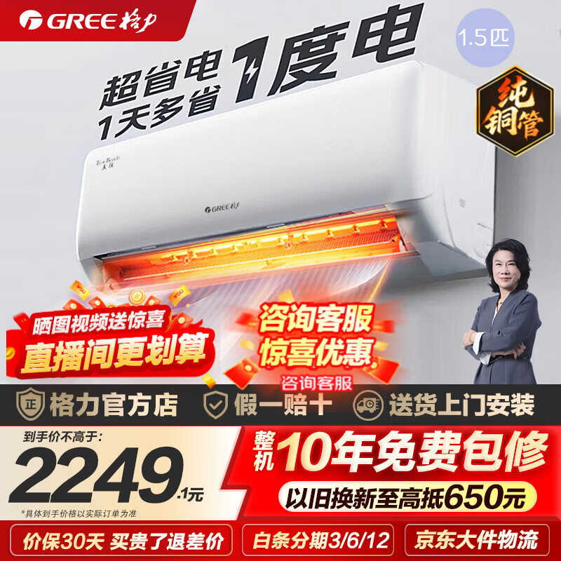格力(GREE)出品 晶弘空调 小凉神1.5匹新一级能效【节能省电】变频冷暖高温自清洁 独立除湿 卧室挂机家电 小凉神 1.5匹 【性价比神机】
