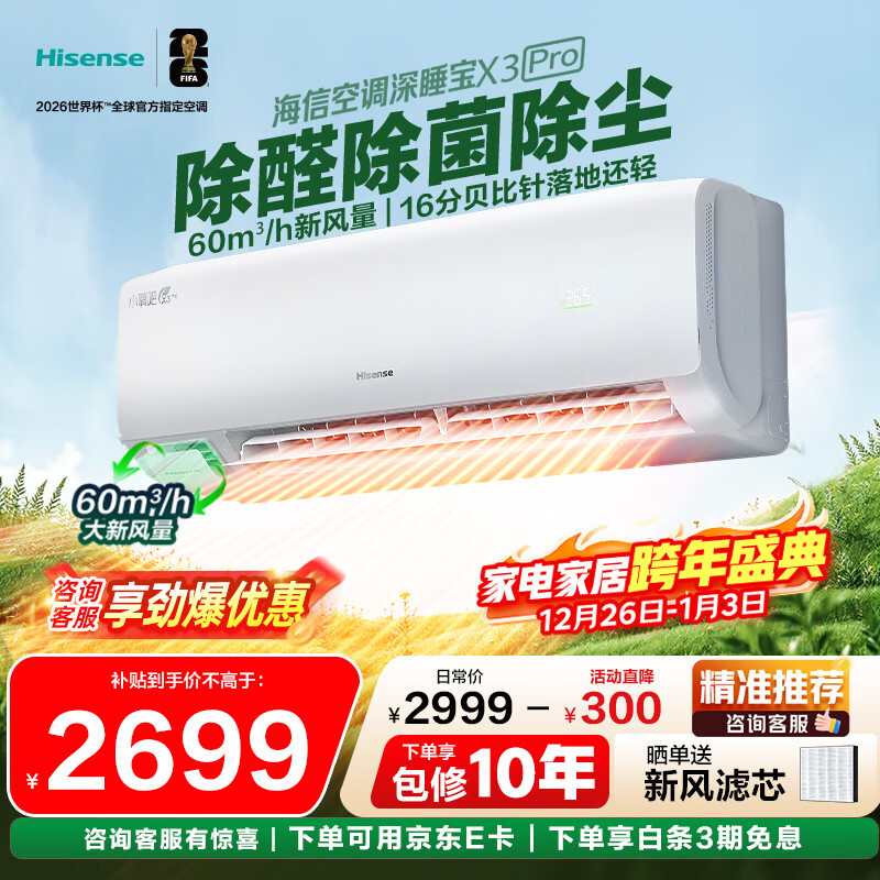 海信(Hisense)新风空调 X3Plus/ X3Pro/ 深睡宝X5 大1.5匹 增氧新风 AI省电 新一级能效 深睡眠挂机空调 深睡宝 大1.5匹 35GW/X300Pro-X1