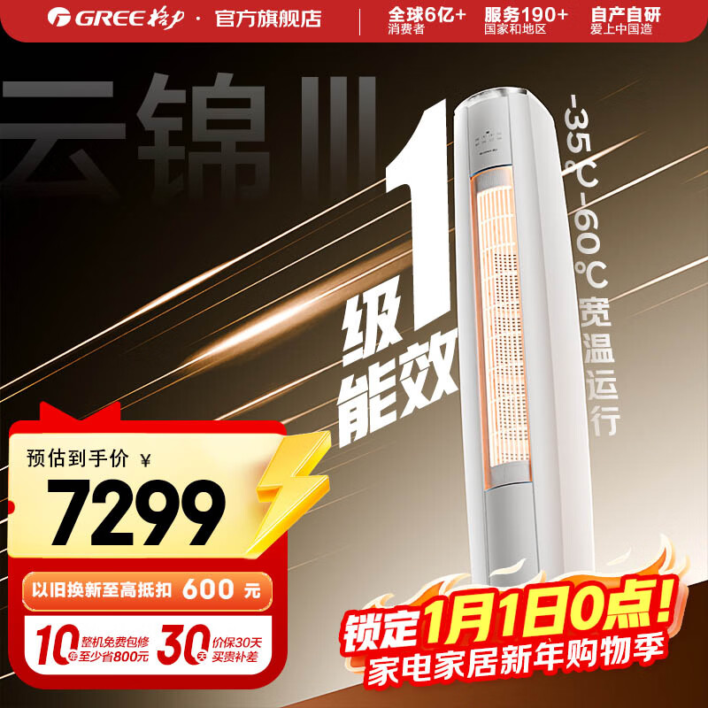 格力空调 3匹 云锦三代 国家补贴 变频冷暖 高温自清洁 智能WiFi 客厅立式空调柜机 以旧换新 3匹 一级能效 云锦三代冷酷款