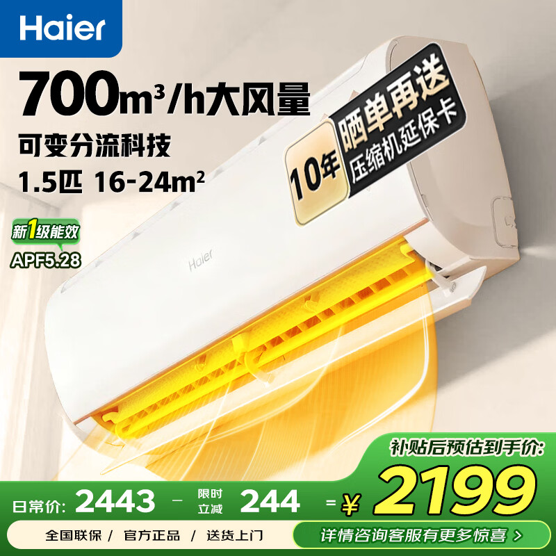 海尔(Haier)小红花套系 净省电空调1.5匹/2匹挂机 新一级能效节能变频快速冷暖 内外机自清洁卧室 1.5匹 一级能效优恋35KTA
