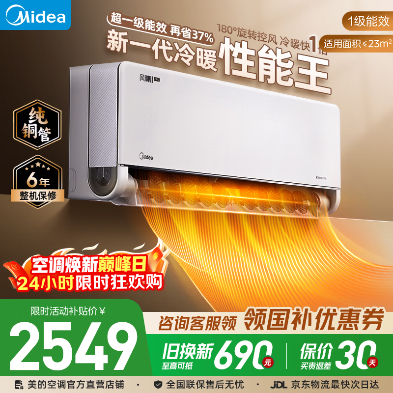 美的空调 大1匹/1.5匹 酷省电 新一级能效 变频冷暖自清洁 家用卧室空调挂机 家电国家补贴 以旧换新 酷省电 青春版 大1.5匹 省电25%