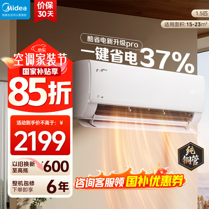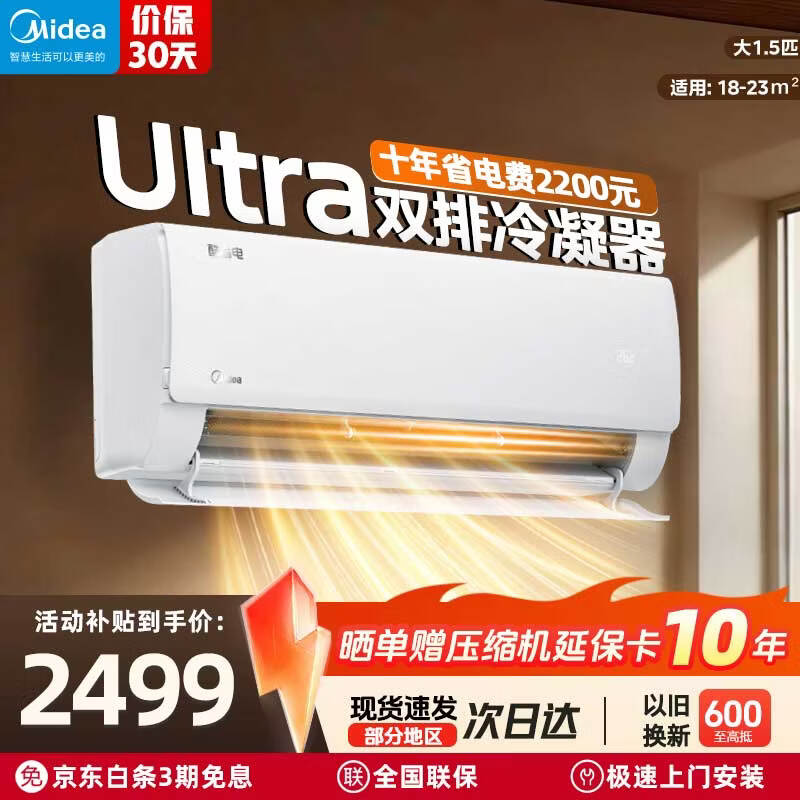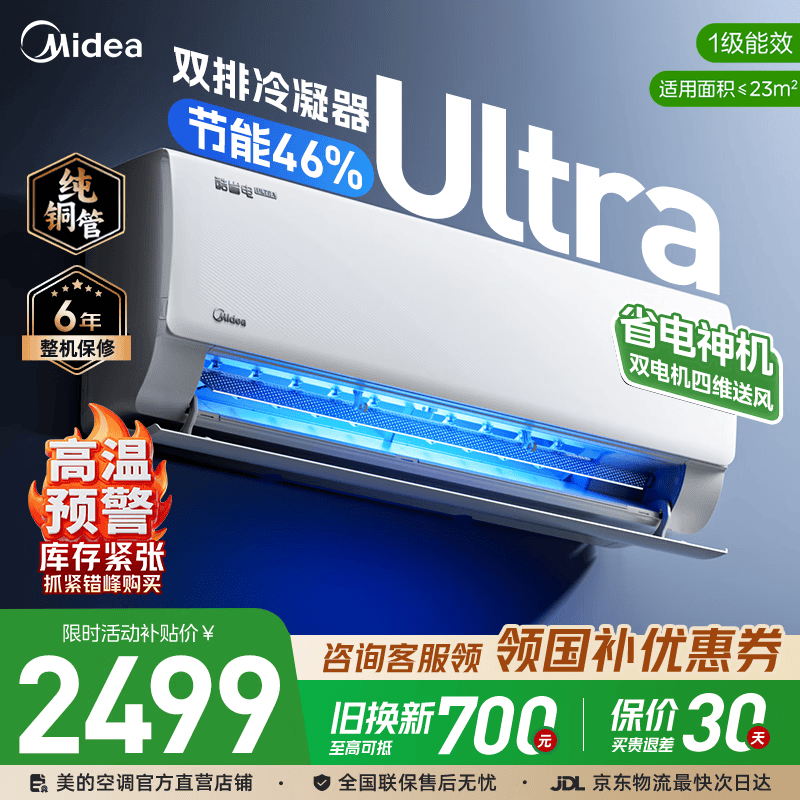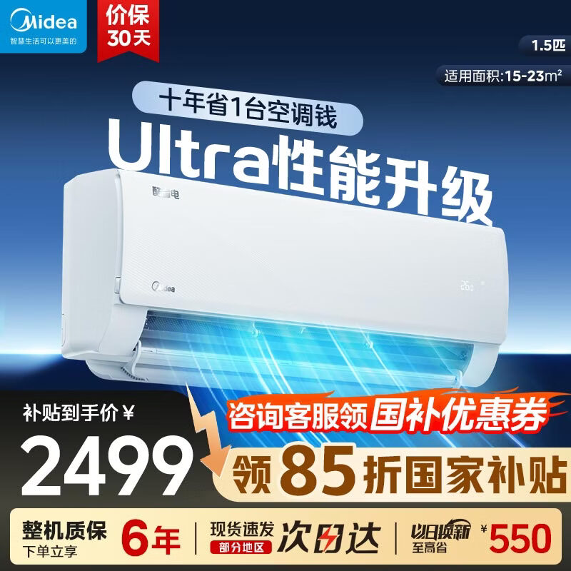 美的(Midea)国家补贴15% 酷省电二代PRO大1.5匹 空调挂机 新一级能效 ultra 变频节能省电冷暖家用卧室壁挂式 酷省电Ultra 一级能效 大1.5匹