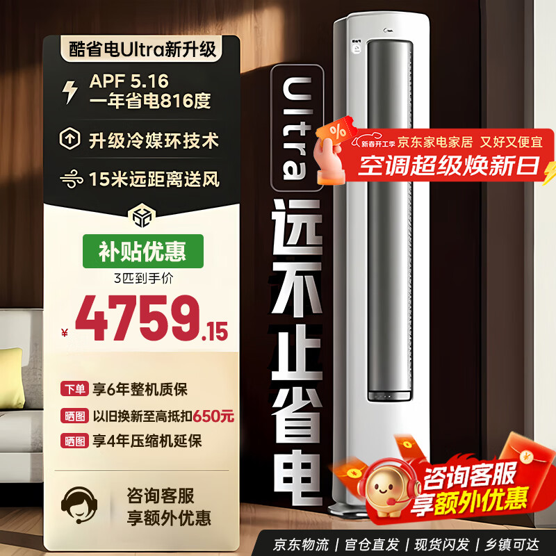 美的空调立式柜机 酷省电Pro 3匹酷省电Ultra 国家补贴15% 新一级能效 变频冷暖节能省电以旧换新 酷省电Ultra 3匹 【重磅新品】
