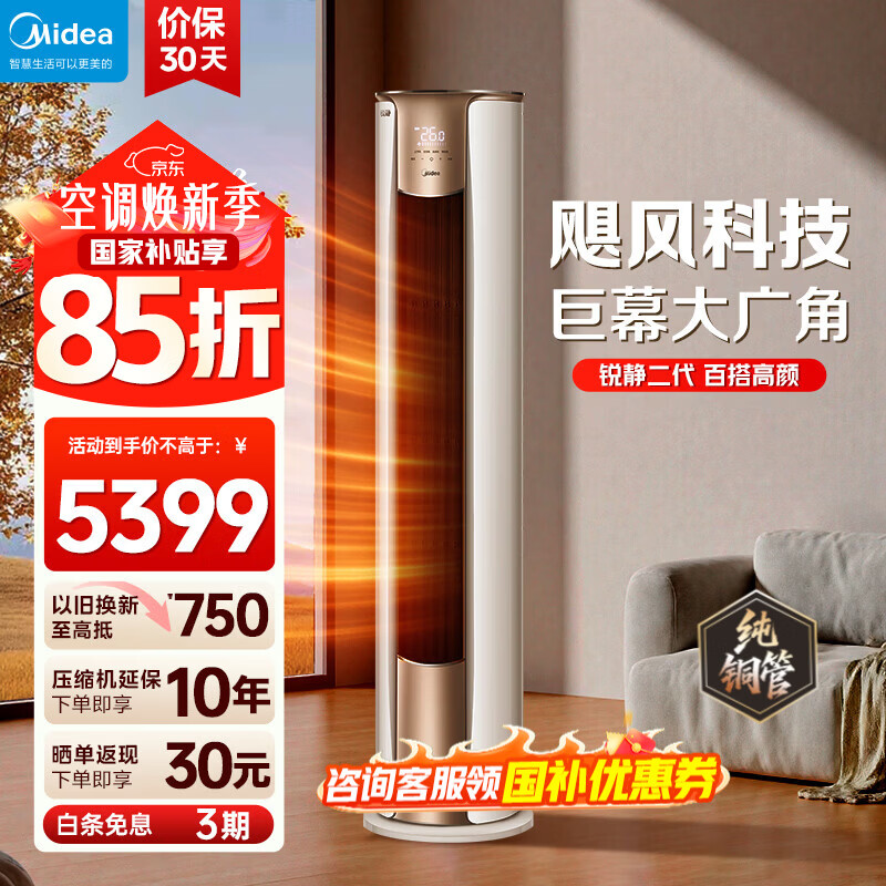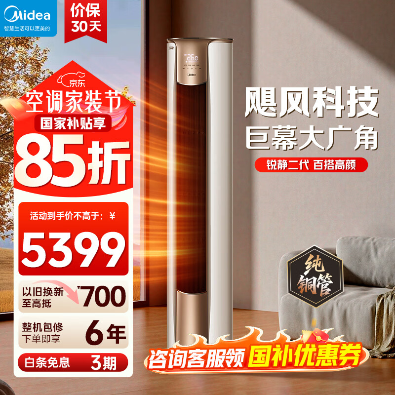 美的(Midea)空调柜机 锐静Ⅱ 风锦二代 3匹新一级全直流变频制冷热加大出风口圆柱立式客厅控温升级款国家补贴 锐静 大3匹 一级能效【高性价比】锐静Ⅱ