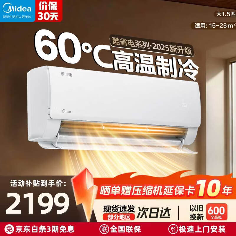 美的(Midea)国家补贴15% 酷省电二代PRO大1.5匹 空调挂机 新一级能效 ultra 变频节能省电冷暖家用卧室壁挂式 酷省电2025版 一级能效 大1.5匹 新款