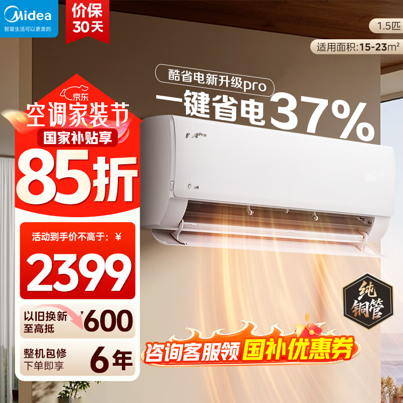 美的(Midea)空调挂机 酷省电二代pro 店长推荐大1.5匹Ultra新一级能效全直流变频节能防直吹以旧换新 国家补贴 酷省电Pro 大1.5匹 省电37% 一级能效