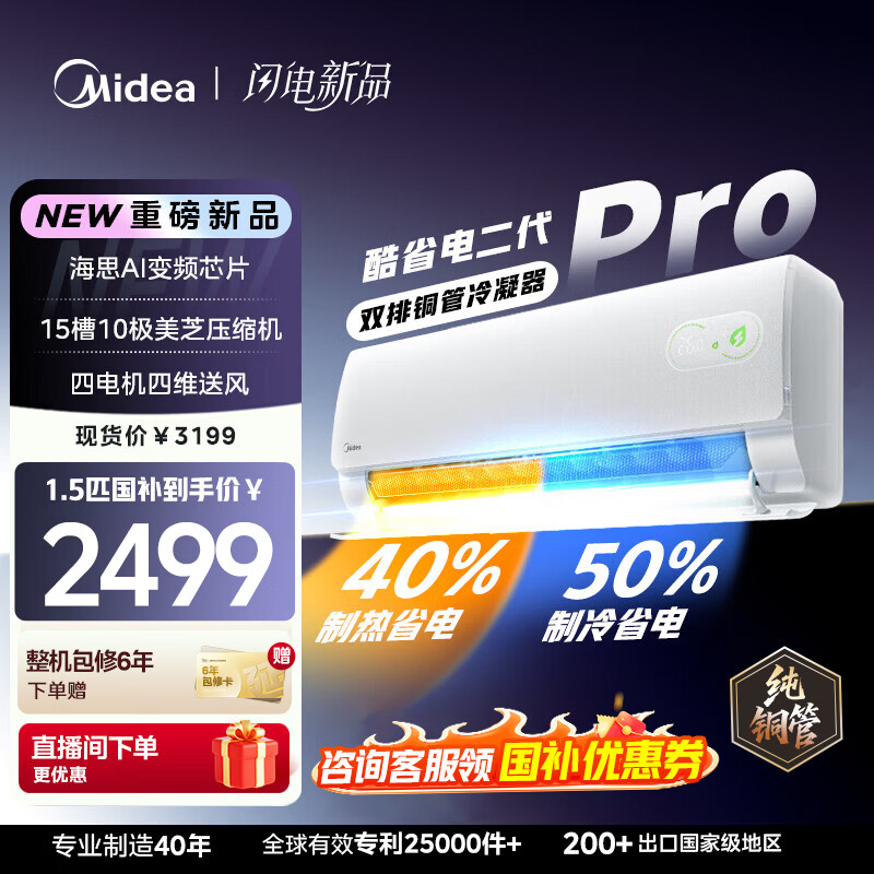 美的(Midea)空调挂机大1.5匹 酷省电二代Pro 店长推荐 双排铜管一级能效变频冷暖家用空调 以旧换新 国家补贴 酷省电2025版 大1.5匹 一级能效
