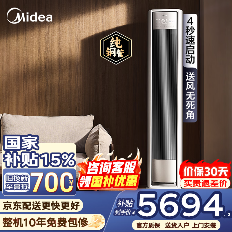美的(Midea)空调立式大3匹风尊二代全面风柜机新一级能效变频冷暖客厅高颜值柜式空调大风量APP智控 国家补贴 大3匹一级能效全面大风口 无死角送风