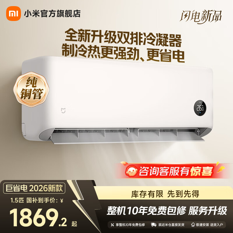 小米空调 巨省电 新一级能效变频冷暖壁挂式卧室智能空调挂机30S速冷60S速热 智慧清洁 国家补贴 巨省电 2026款 大1.5匹 双排冷凝器 APF5.45