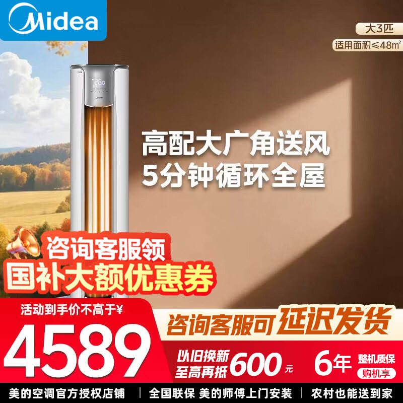 美的(Midea)空调柜机 风锦二代 3匹新一级全直流变频制冷热加大出风口圆柱立式客厅控温升级款 大3匹 一级能效【人气之选】风锦Ⅱ