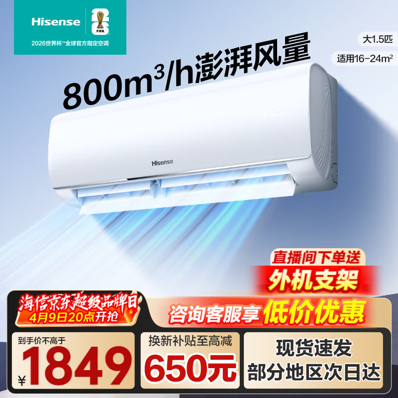 海信空调深睡宝新风大1.5匹家用挂机国补一级能效以旧换新补贴