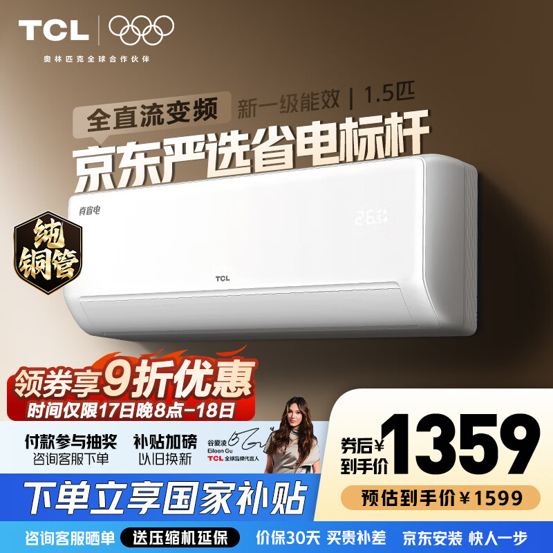 TCL空调1/1.5/2匹 真省电空调挂机 超一级能效 变频冷暖 壁挂式卧室挂机 以旧换新空调 1.5匹 一级能效真省电