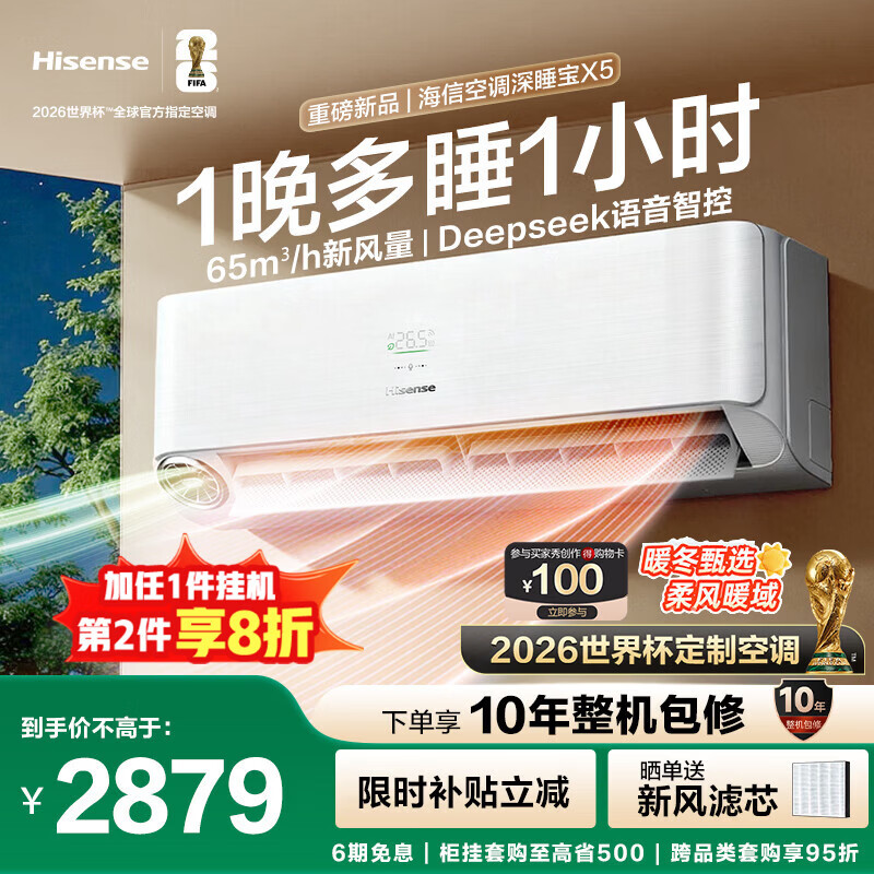 海信(Hisense)空调深睡宝X5 世界杯定制空调 大1.5匹 AI洁净新风空调 DeepSeek 语音智控 国家补贴 KFR-35GW/X5E1-1