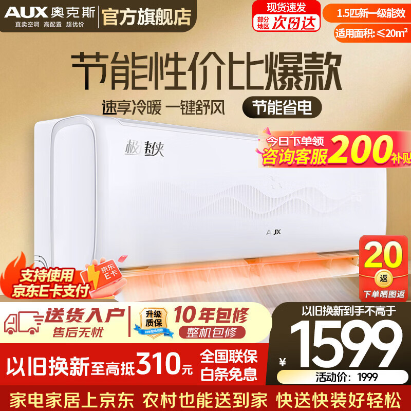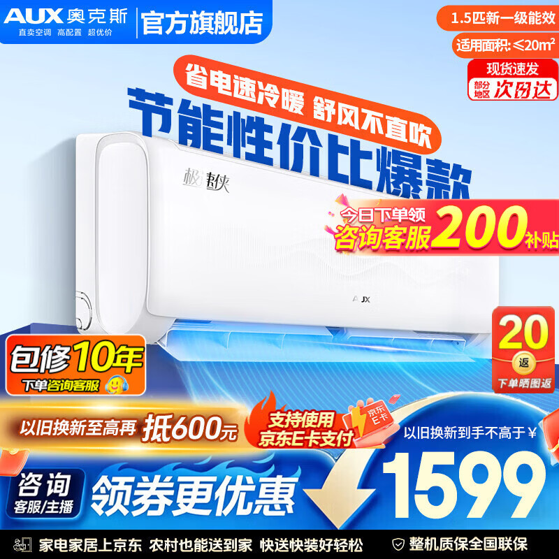 奥克斯(AUX)空调1.5匹 挂机新1级能效独立除湿节能省电一键舒风壁挂式卧室冷暖自清洁以旧换新 1.5匹 新一级能效TQK