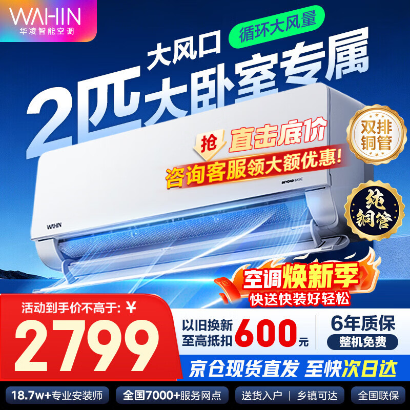 华凌空调 超省电挂机 超一级能效大1.5匹变频 空调扇 以旧换新家电 变频省电 2匹 一级能效50HL1 大挂机 双排铜管